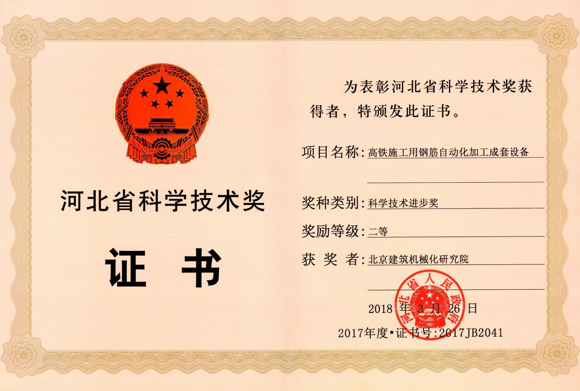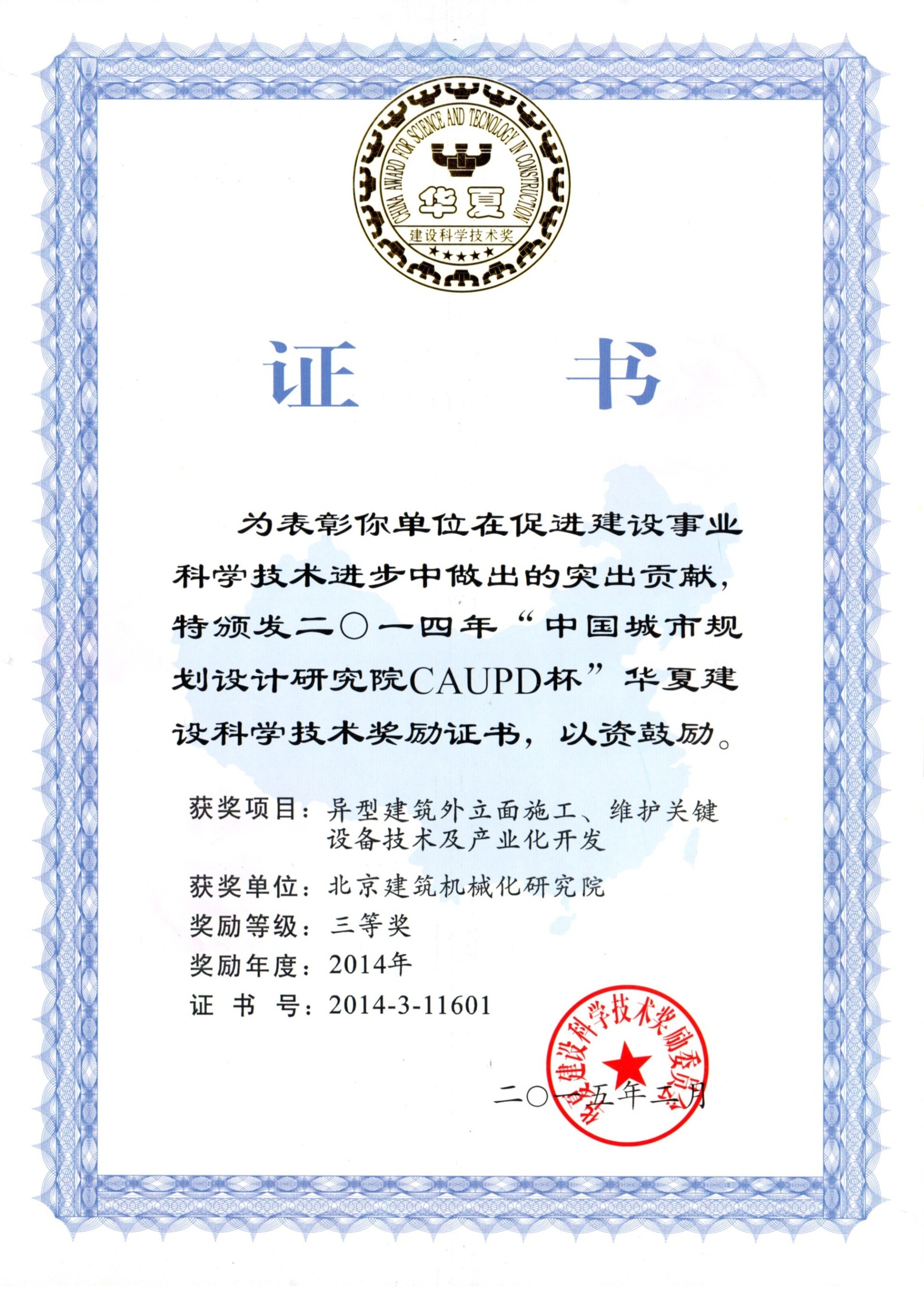 北京建筑機械化研究院—獲獎證書
